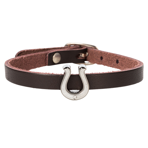 馬蹄モチーフのトップにはキラリとさりげなく光るダイヤモンドを1石セットしたレザーブレスレットです。