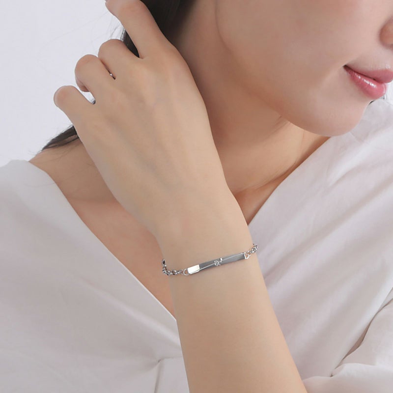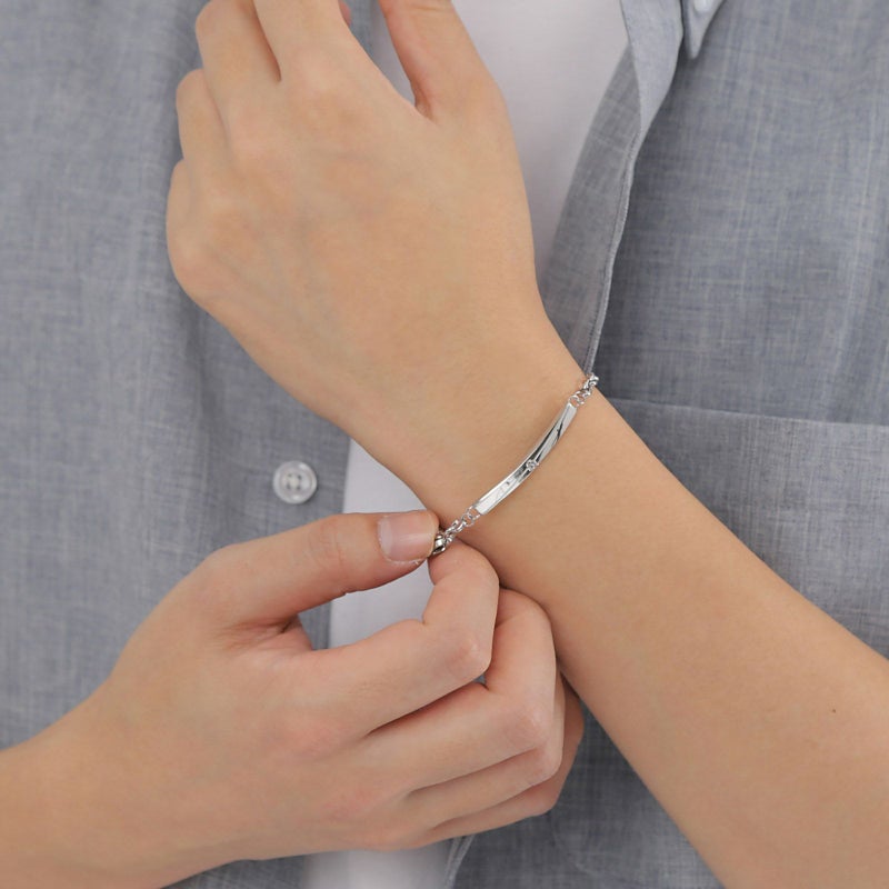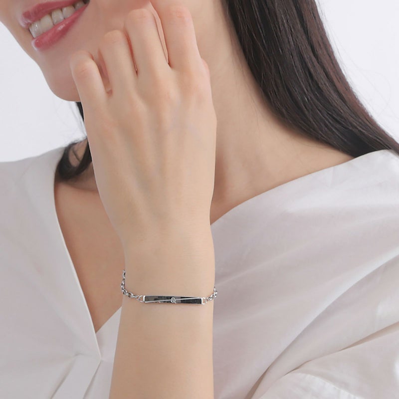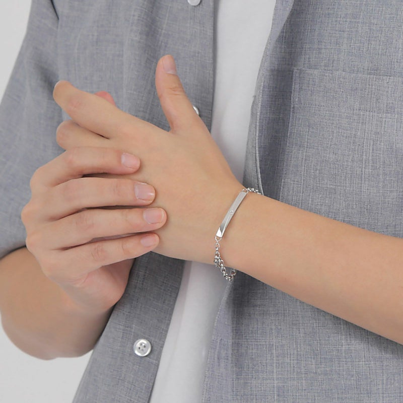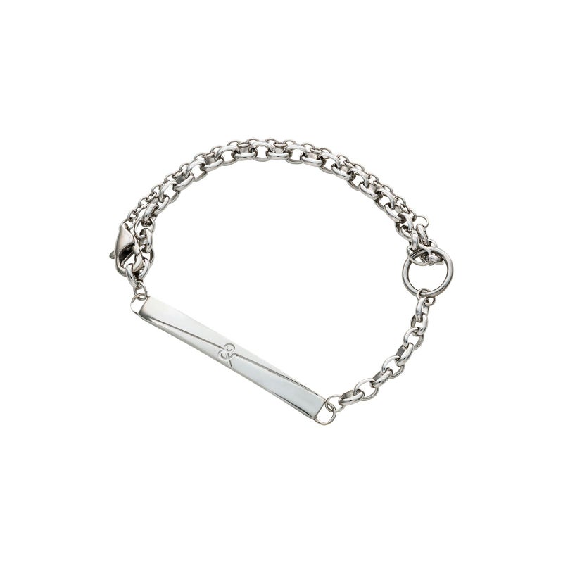 クロスラインと「&」の文字がデザインされたステンレス製のブレスレット。