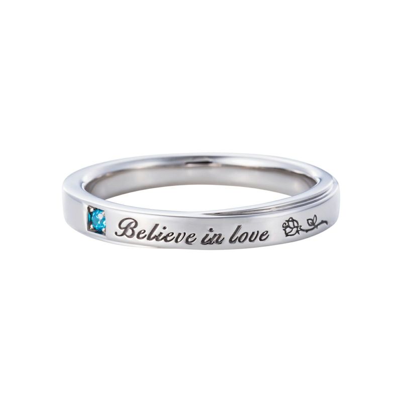 リング外側にはバラの花のデザインに「Believe in love」のメッセージとカラーストーンをセットしました。