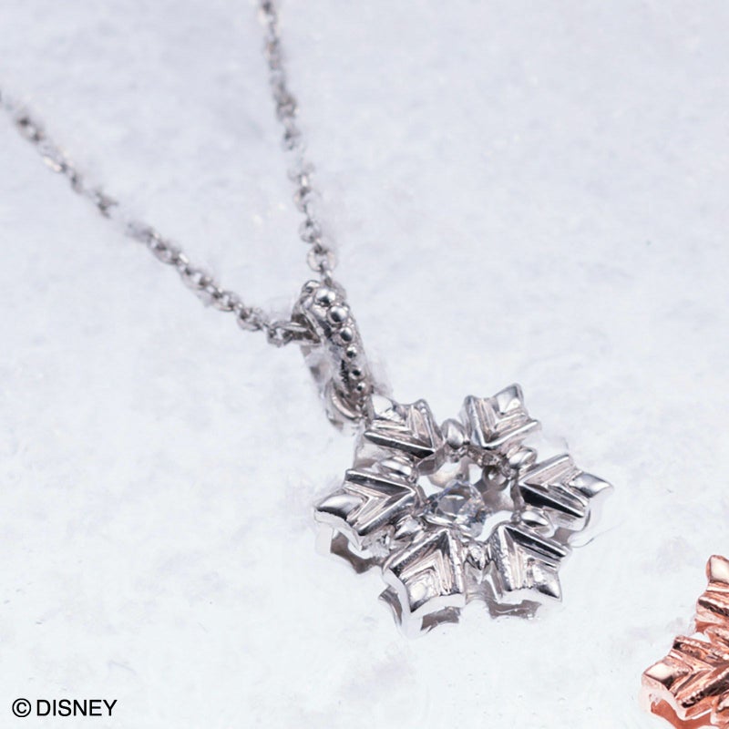 ディズニー史上初の2人のプリンセスが主人公である「アナと雪の女王」。 雪の結晶のモチーフでデザインし、真ん中にはキラキラ揺れ続けるキュービックジルコニアを。揺れ続ける石がエルサの揺れる気持ちを表すように胸元でキラキラ輝いてくれます。