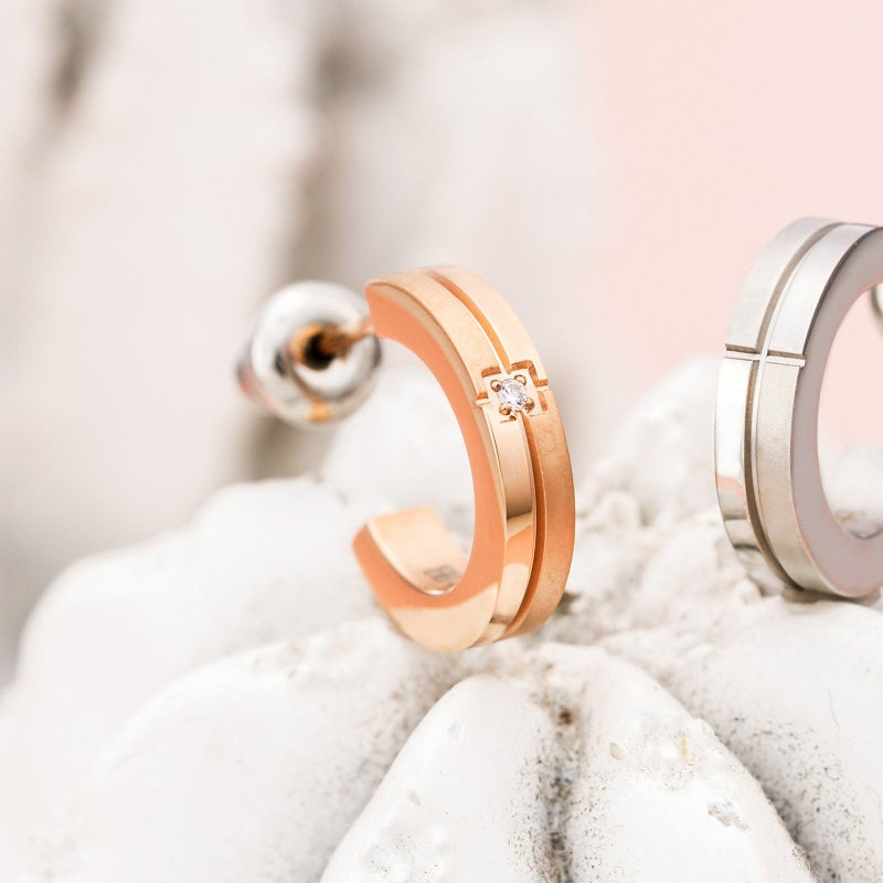 光沢とマットの質感の違いにこだわったクロスデザインのハーフフープピアス。