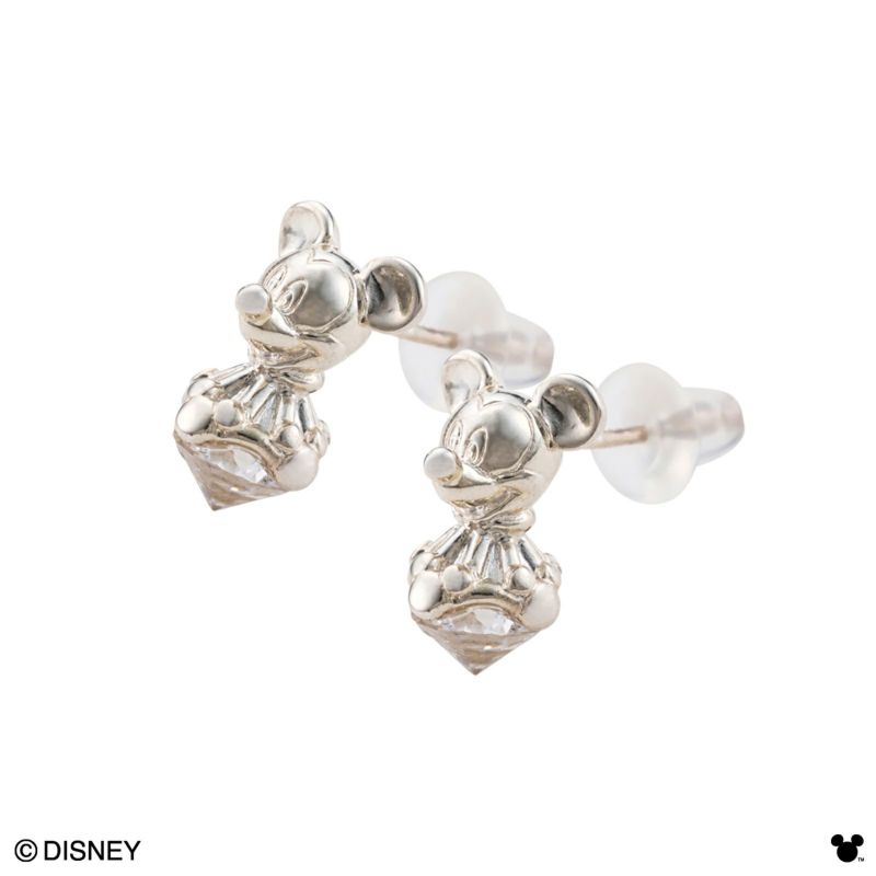 小さなピアスにも細かく繊細な技術で立体デザインを施したミッキーのピアス。笑顔が可愛いミッキーとミッキーのアイコンをストーンの全周に施したこだわりデザイン。シルバー925の特性を活かした細かい立体デザインで今にも動き出しそうなミッキーを表現しています。世界中で愛されているミッキーマウスをモチーフにしたアクセサリーです。