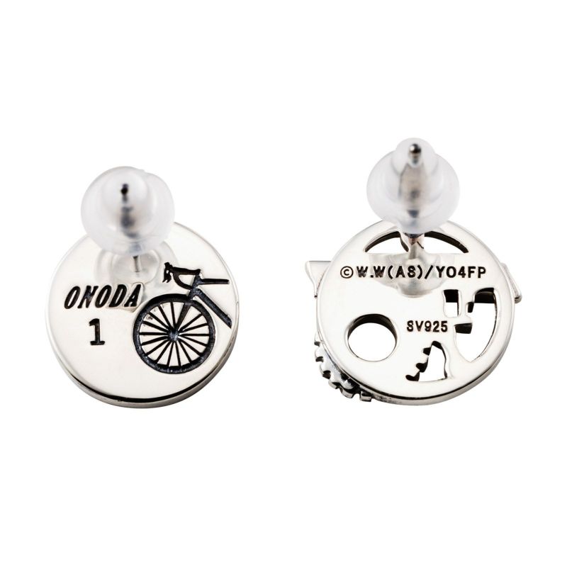 片方のピアスは総北高校の校章をデザインし、裏面には自転車のシルエット、背番号「1」、「ONODA」の文字が刻印されています。