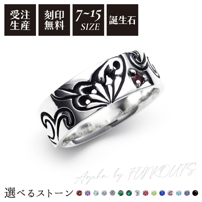 別売りのメンズリングと重ね合わせると蝶のシルエットが綺麗に現れます。