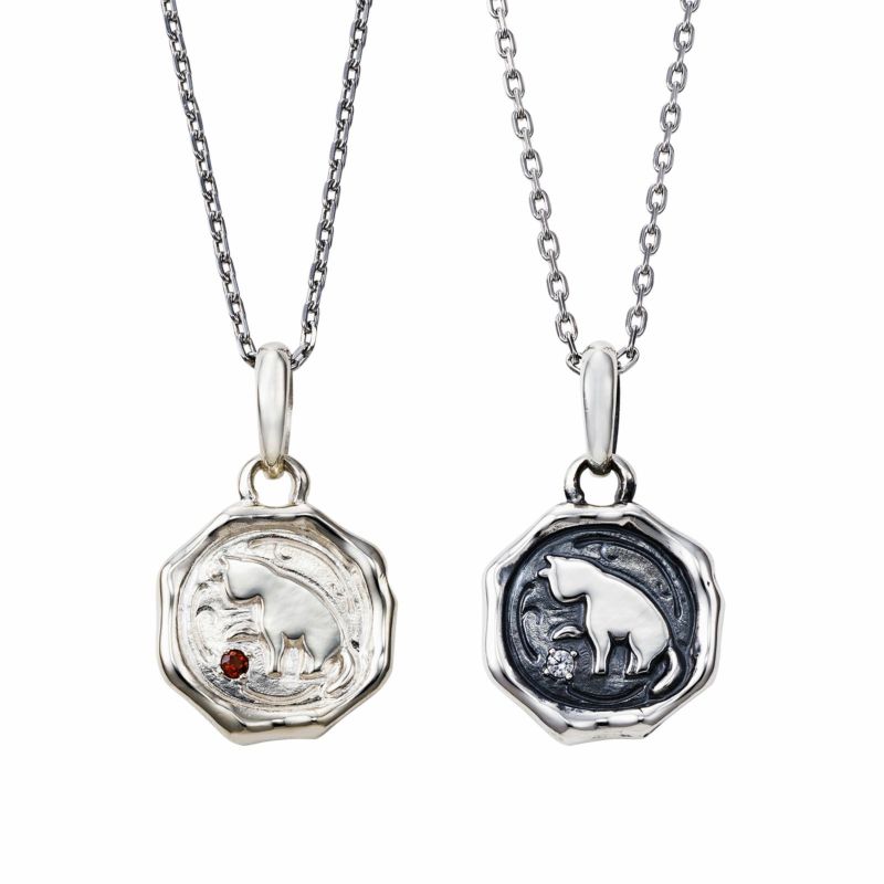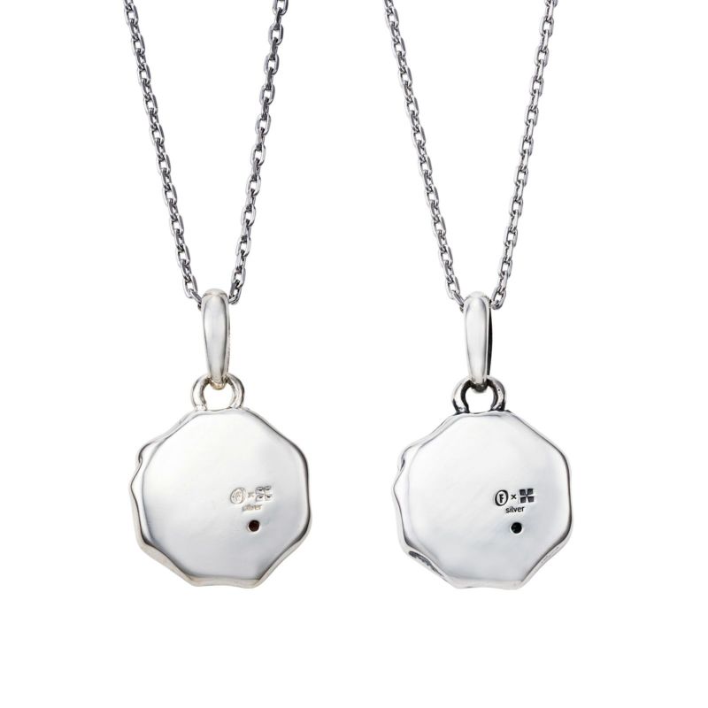 レディースネックレスは全体を鏡面仕上げに、メンズネックレスは全体を鏡面と燻し仕上げで製作しました。