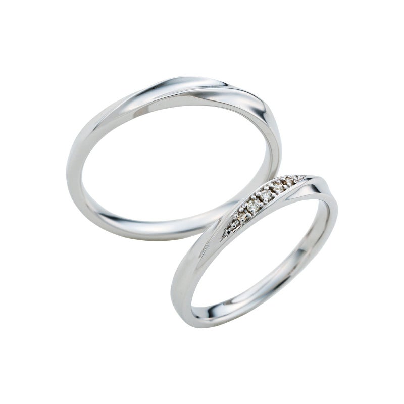 レディースリングには輝く大小5つのダイヤモンドをセットしました。