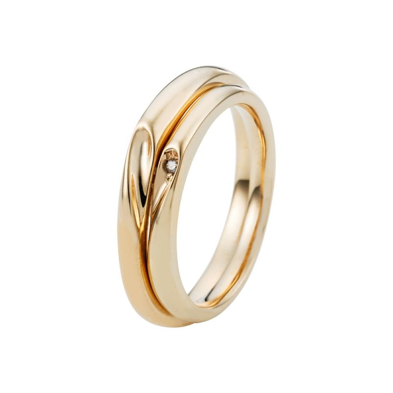 2つのリングを合わせるとハートが完成するシェアハートデザインのペアリング。