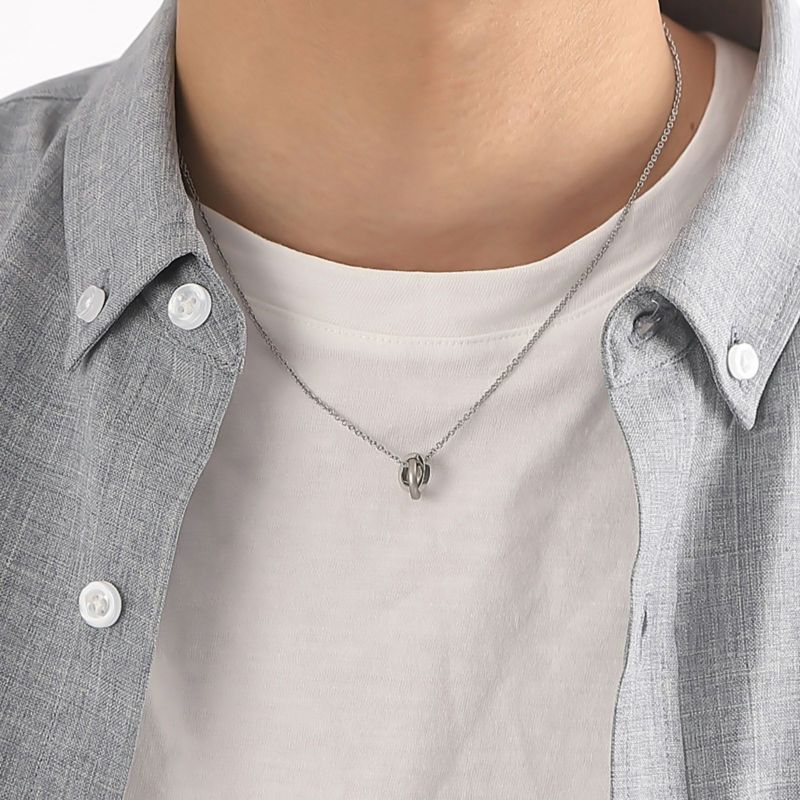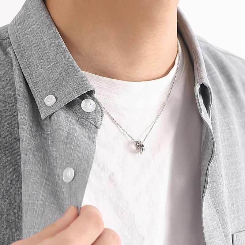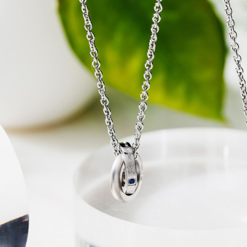 ふたつの小さなリングを繋いだダブルループネックレス。