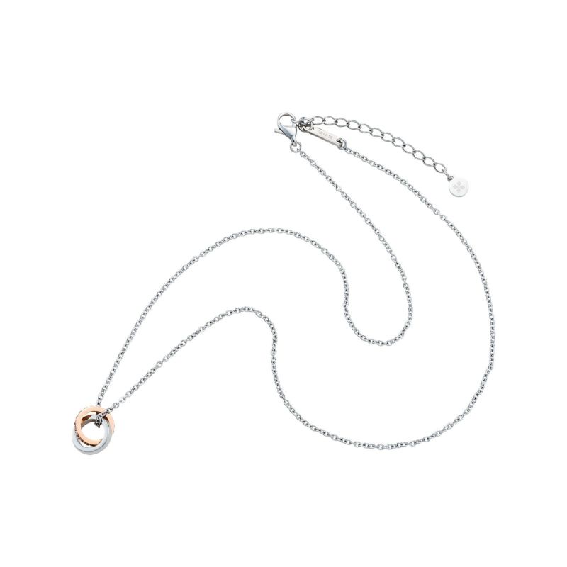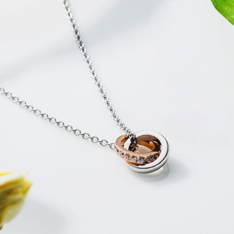 ふたつの小さなリングを繋いだダブルループネックレス。