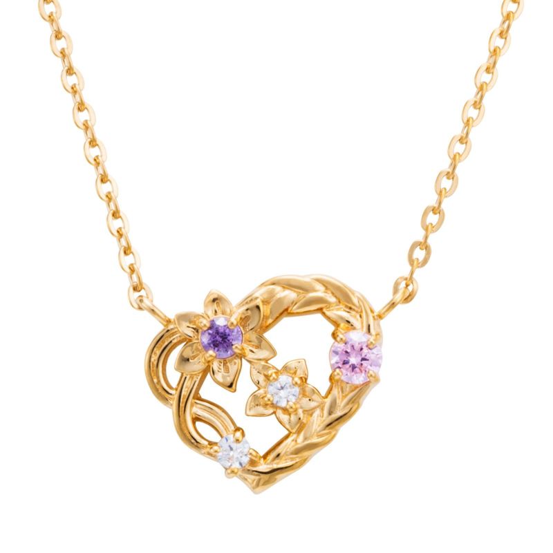 ラプンツェルの長い髪の編み込みをイメージしたエレガントなオープンハートにお花のモチーフをセットしました。