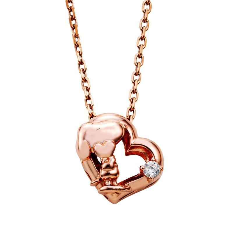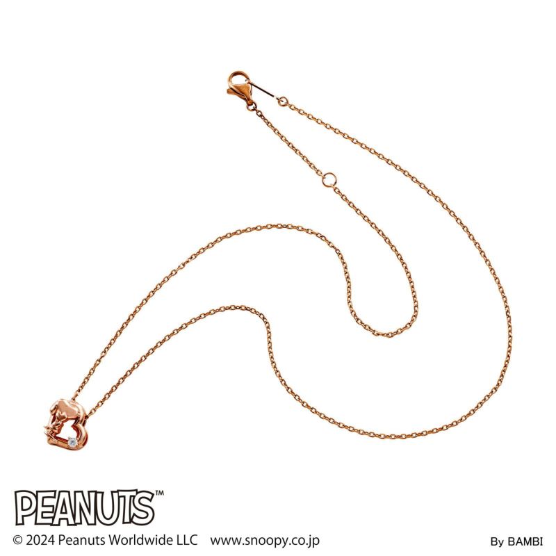 優しく微笑んでいるスヌーピーの表情がキュートなハート型のネックレス。