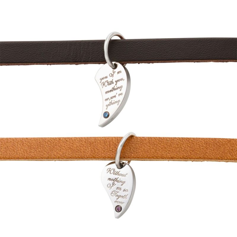 2つ合わせるとハートとメッセージが現れるペアブレスレット。