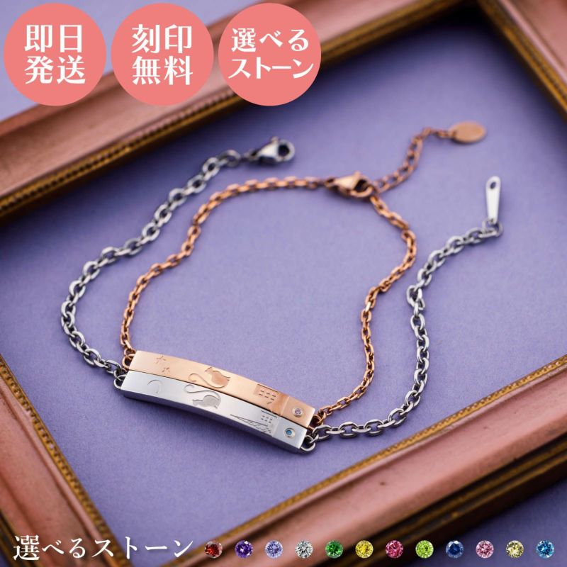 ペアブレスレット ステンレス 誕生月カラーキュービック 4SBR209GO&4SBR210SV