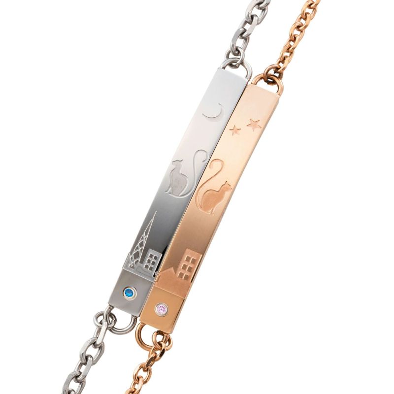 神秘的でロマンチックな月と星と猫をモチーフに作られたペアブレスレットは、猫好きにはたまらない大人気のデザインです。