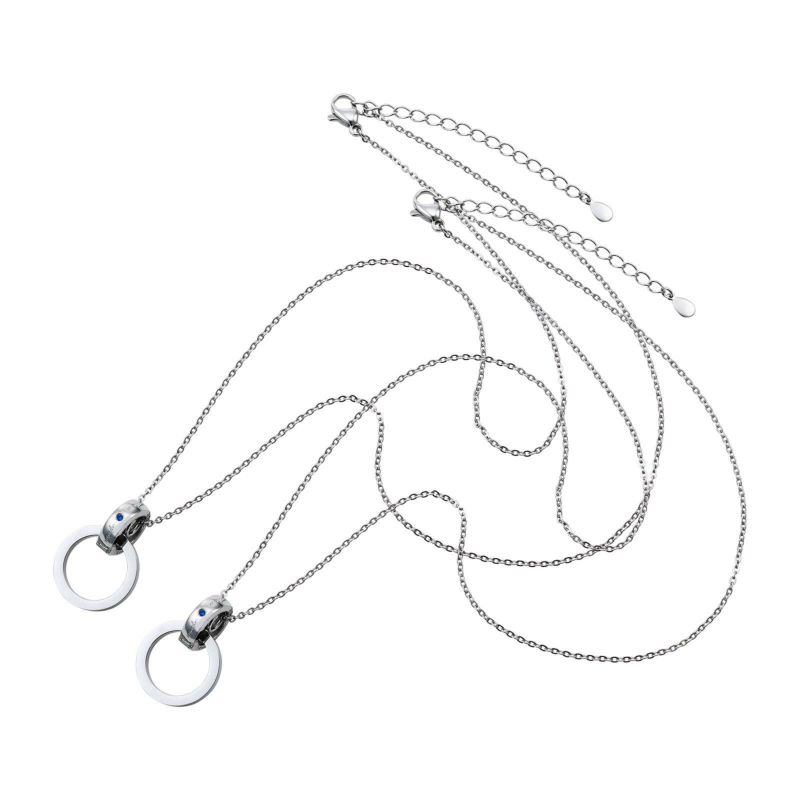 ブルーのキュービックが輝くリングホルダーとリングパーツを合わせたペア(2本セット)のグラスホルダーネックレスです。