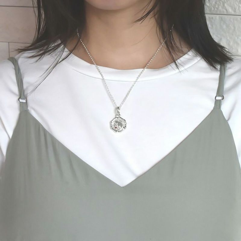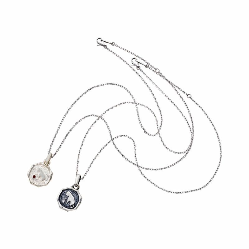 玉遊びをしている猫がデザインされたシルバーネックレスです。