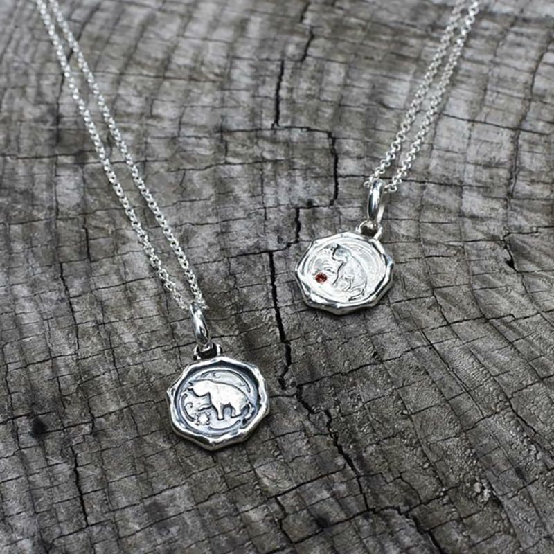 レディースネックレスは全体を鏡面仕上げに、メンズネックレスは全体を鏡面と燻し仕上げで製作しました。