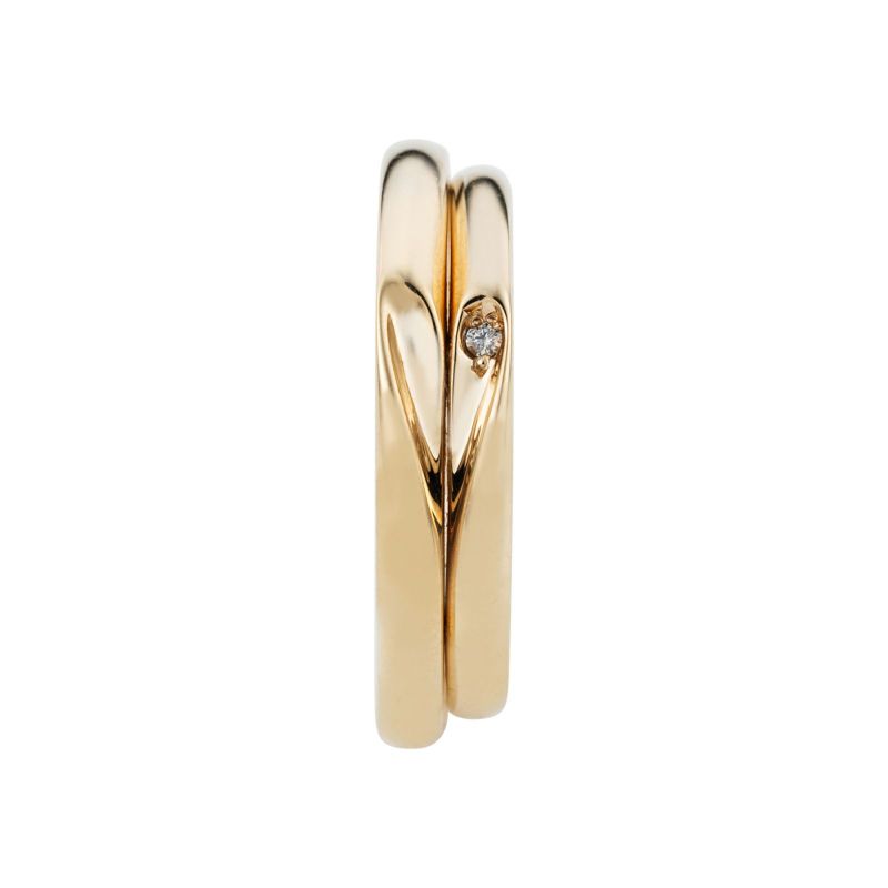 2つのリングを合わせるとハートが完成するシェアハートデザインのペアリング。