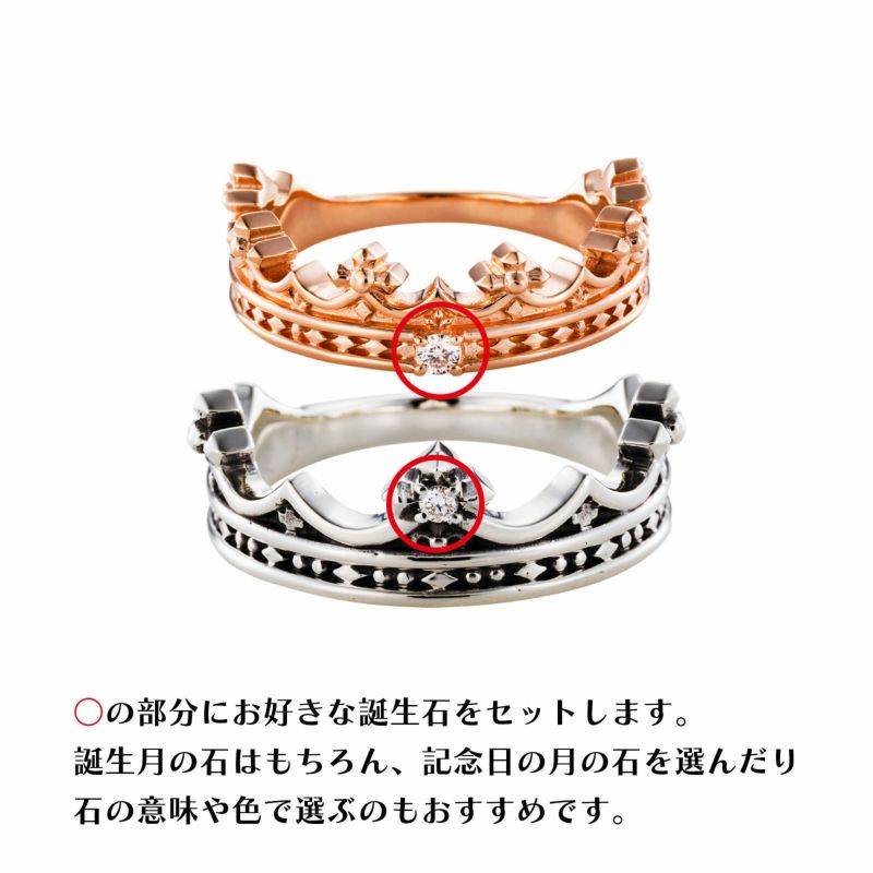 選べる誕生石は、1月ガーネット、2月アメジスト、3月アクアマリン、4月ダイヤモンド、5月エメラルド、6月ブルームーン、7月ルビー、8月ペリドット、9月サファイア、10月ピンクトルマリン、11月ブルートパーズ、12月タンザナイトです。
