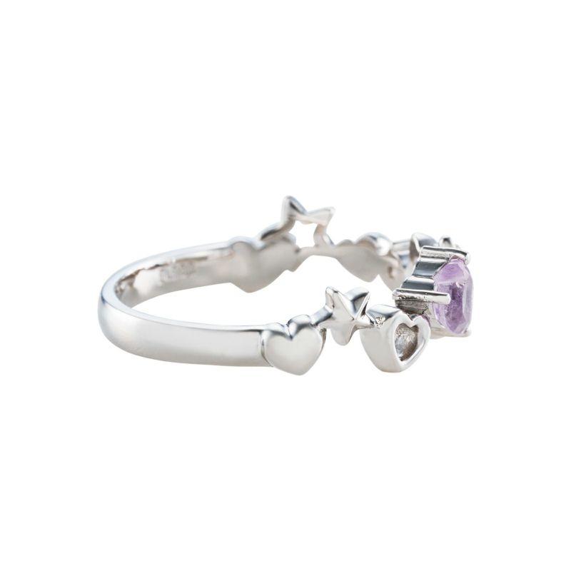 ハート形のピンクアメジストとブルームーンストーンが、キティのかわいいイメージにぴったりのデザインです♪
