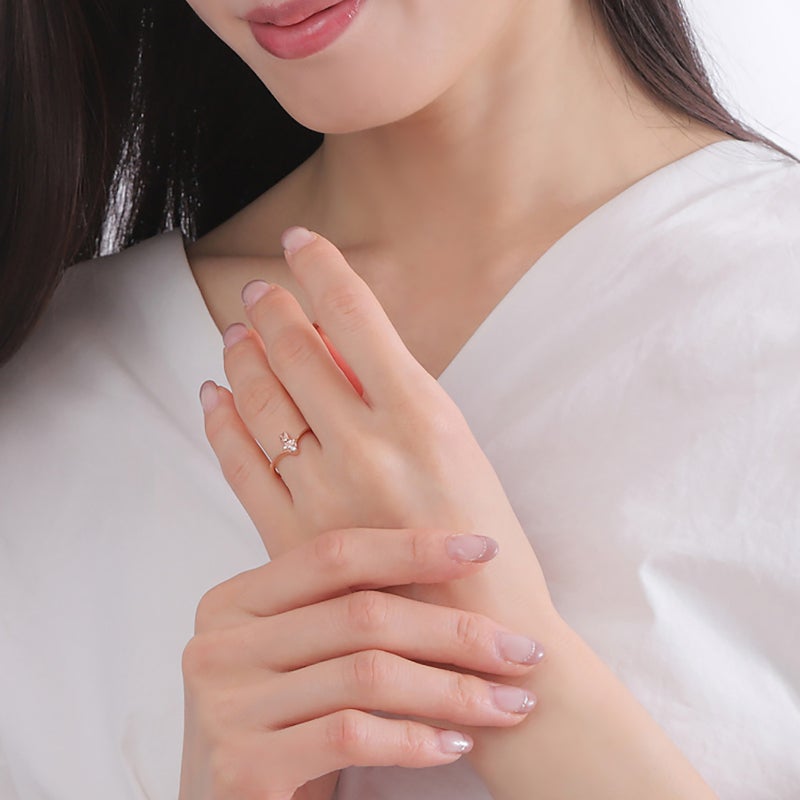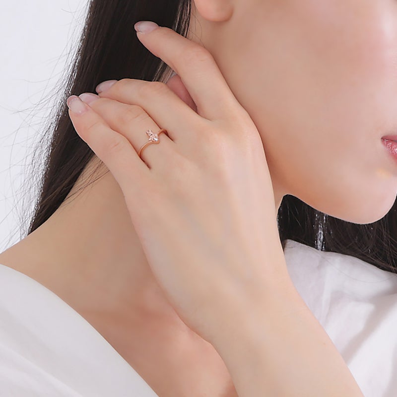 細身のアームにキュービックを施した大きなハートとマロンクリームをデザインしたリングは、身につけるだけでハッピーな気持ちになれるガーリーデザイン♪